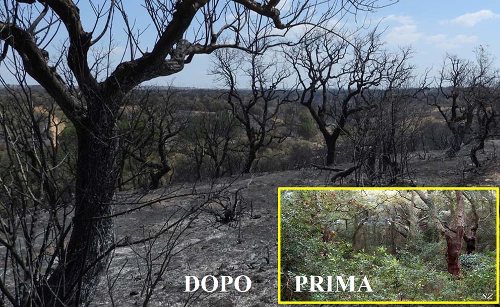 Nelle foto il disastro ambientale della Sughereta di Niscemi (dalle pagine del Sindaco di Niscemi e del Presidente del CEA Niscemi)